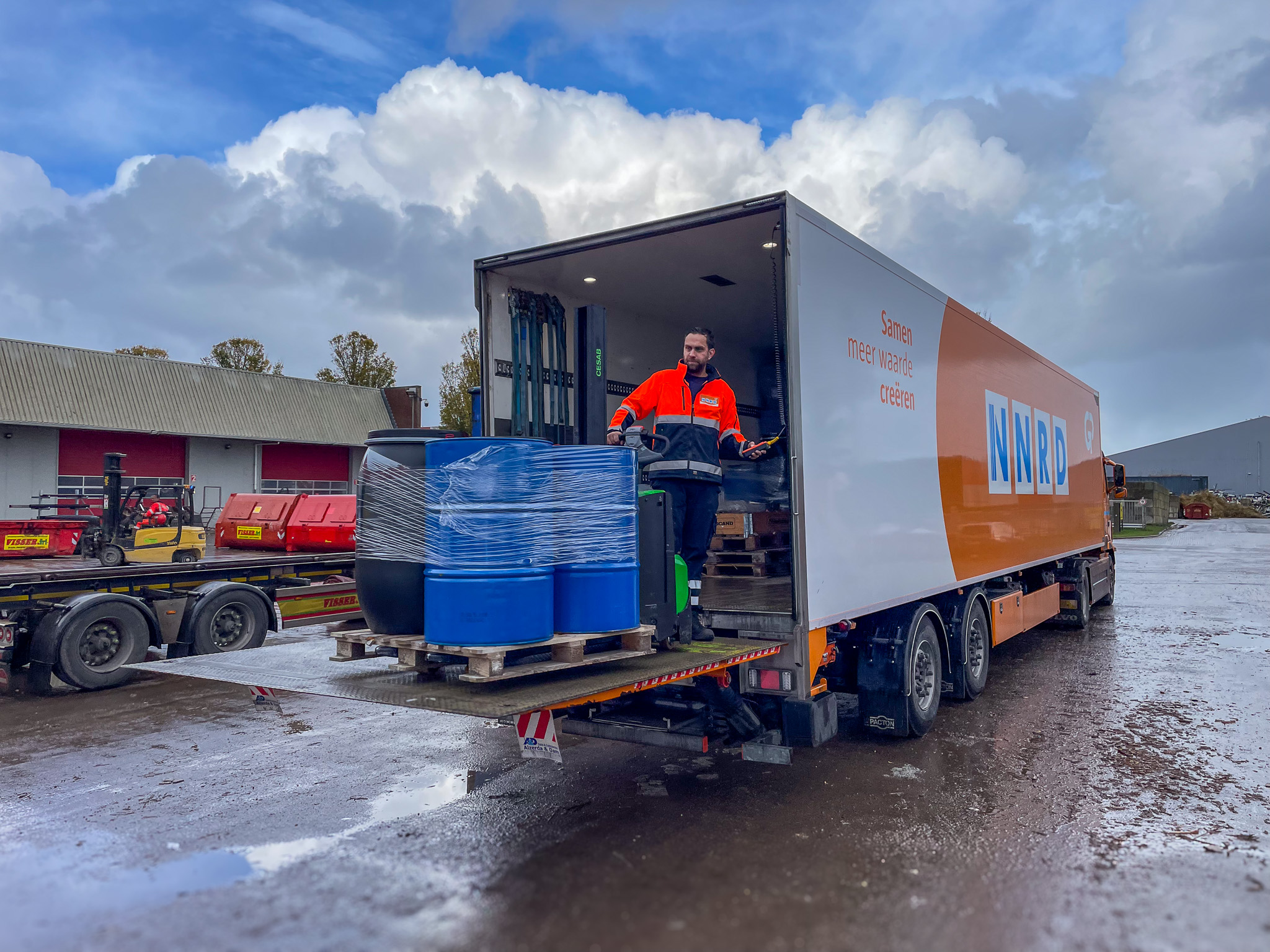Jesmer: “Ik haal dagelijks gevaarlijk afval op bij bedrijven, organisaties en zorginstellingen in Noord-Nederland. Dat kan van alles zijn: verfblikken, olie, chemicaliën, medisch afval, spuitbussen… eigenlijk alles wat niet als restafval kan worden ingezameld. “Klanten verzamelen het in speciale vaten of containers, en ik zorg ervoor dat het veilig wordt opgehaald en vervoerd.”